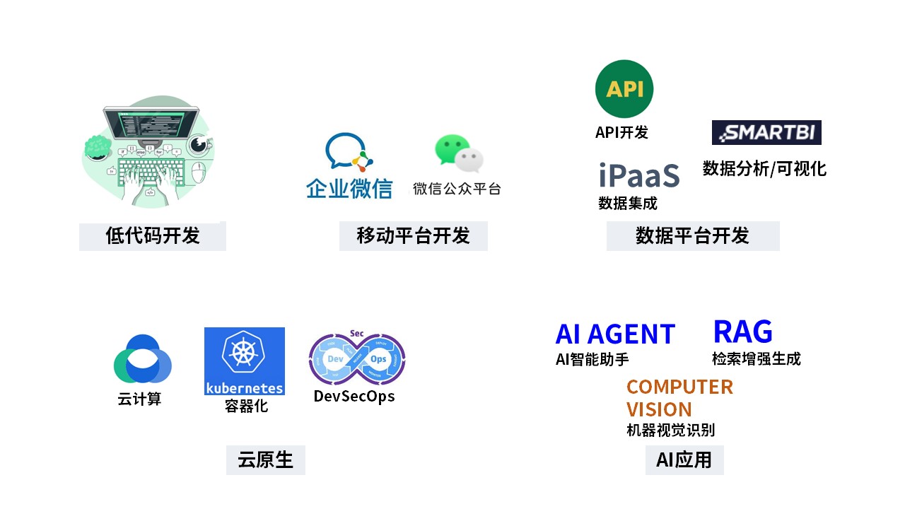 技術(shù)設(shè)施部署、個(gè)性化開(kāi)發(fā)、應(yīng)用上線(xiàn)。