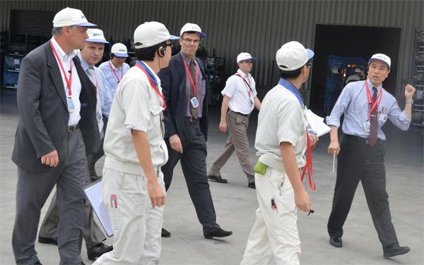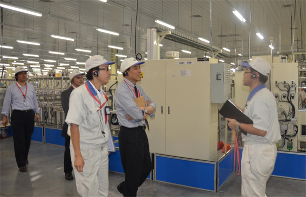 之后來訪客戶在佐藤經(jīng)理的帶領(lǐng)下進(jìn)行生產(chǎn)現(xiàn)場,參觀AFY CASE加工和組裝,APY CASE加工和組裝等生產(chǎn)線的同時(shí),針對一期和二期的工廠狀況,佐藤經(jīng)理和森島分別對現(xiàn)場內(nèi)的工作環(huán)境和各流水線工作情況進(jìn)行了詳細(xì)的說明。