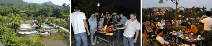 康橋溫泉度假村坐落于華僑之鄉(xiāng)臺山市,是一家4A級旅游度假村。內有別墅區(qū)、果園、溫泉區(qū)等。溫泉中心設有五大主題溫泉區(qū),共有各式溫泉池108個。在酒店用過午餐后,自由行動,泡泡溫泉、散散步、聊聊天,看看風景,閑適度過。有滋養(yǎng)皮膚的蘆薈池、強生健體的百合湯、還有特色魚療池。很多同事都是第一次體驗魚療,一下水,小魚們便蜂擁而至,嘟著小嘴親吻皮膚,只能用“觸電般的感覺”來形容感受了!