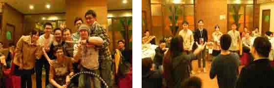 接下來是游戲時間啦!第一個是專屬于日方人員的游戲——《繞口令接力賽》,這個游戲不但能激起日方人員學(xué)習(xí)中文的動力,還能讓中方人員樂開懷,真的是一舉兩得。日方人員讀完了繞口令之后,大家用牙簽投給了自己心儀的隊伍,為了免于懲罰,兩個隊伍都很賣力地為自己拉票,因為戰(zhàn)敗的一隊需向觀眾展示自己的扭姿——呼啦圈,而優(yōu)勝者則可獲得豐厚的獎品。不過有勝必有敗。最后戰(zhàn)敗隊還是欣然接受了我們的懲罰,給大家找了點樂子。