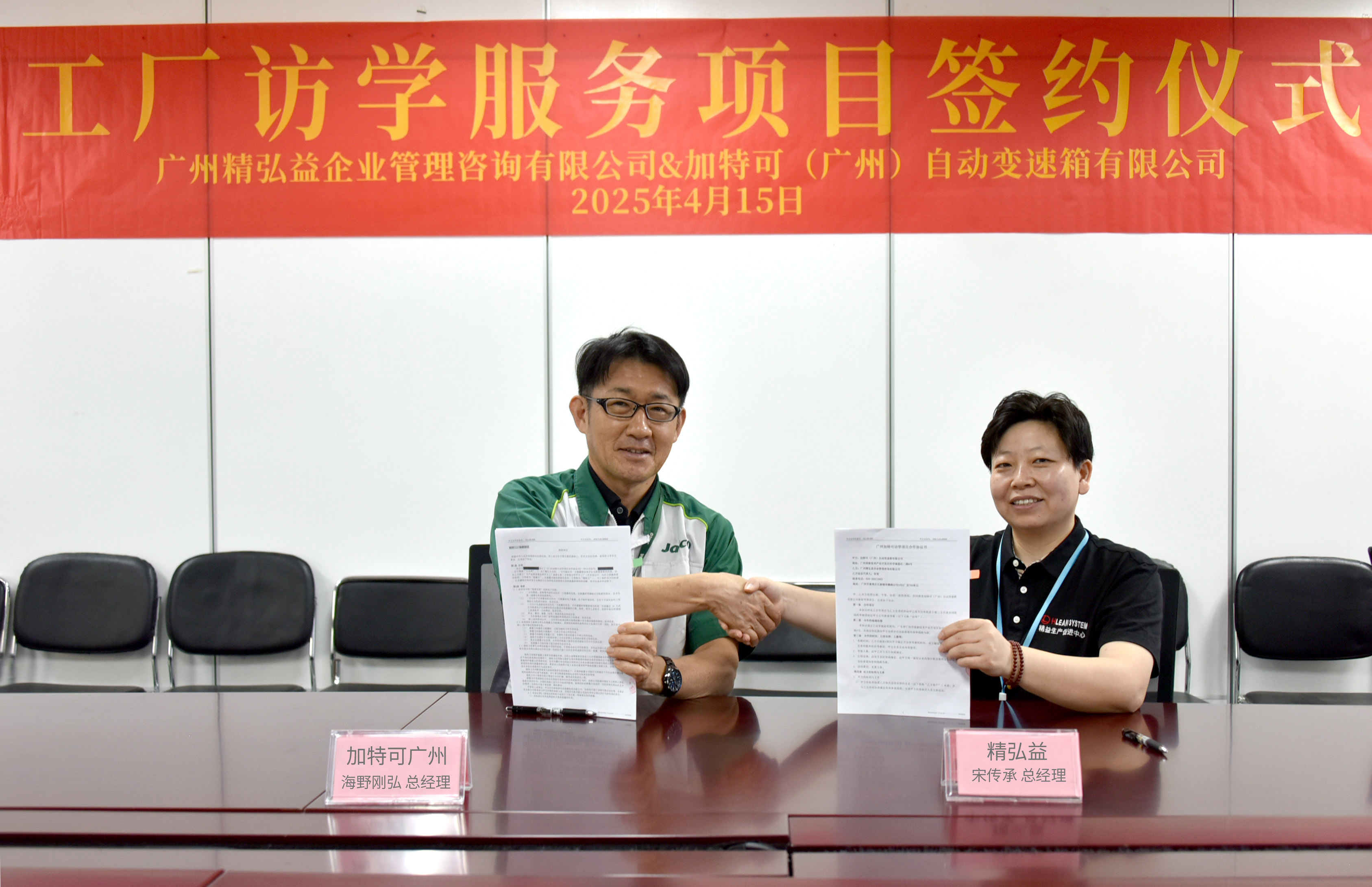 加特可(廣州)自動(dòng)變速箱有限公司(下稱加特可廣州)與廣州精弘益企業(yè)管理咨詢有限公司(下稱精弘益)就加特可廣州工廠訪學(xué)項(xiàng)目結(jié)成合作伙伴,4月15日于加特可廣州舉行了簽約儀式。