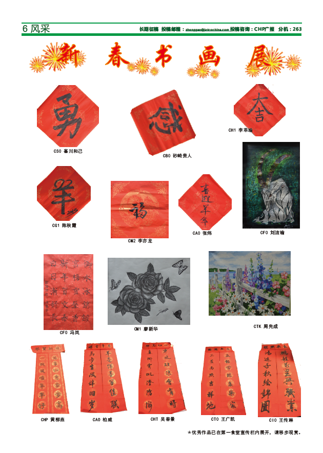 以活躍企業(yè)文化氛圍為目的。展現(xiàn)企業(yè)員工風(fēng)采。第一屆JGZ新春書畫比賽順利舉辦?;顒邮盏絹碜愿鞑块T18人所創(chuàng)作的21幅作品。其中繪畫作品5幅,春聯(lián)7幅,年畫作品9幅。