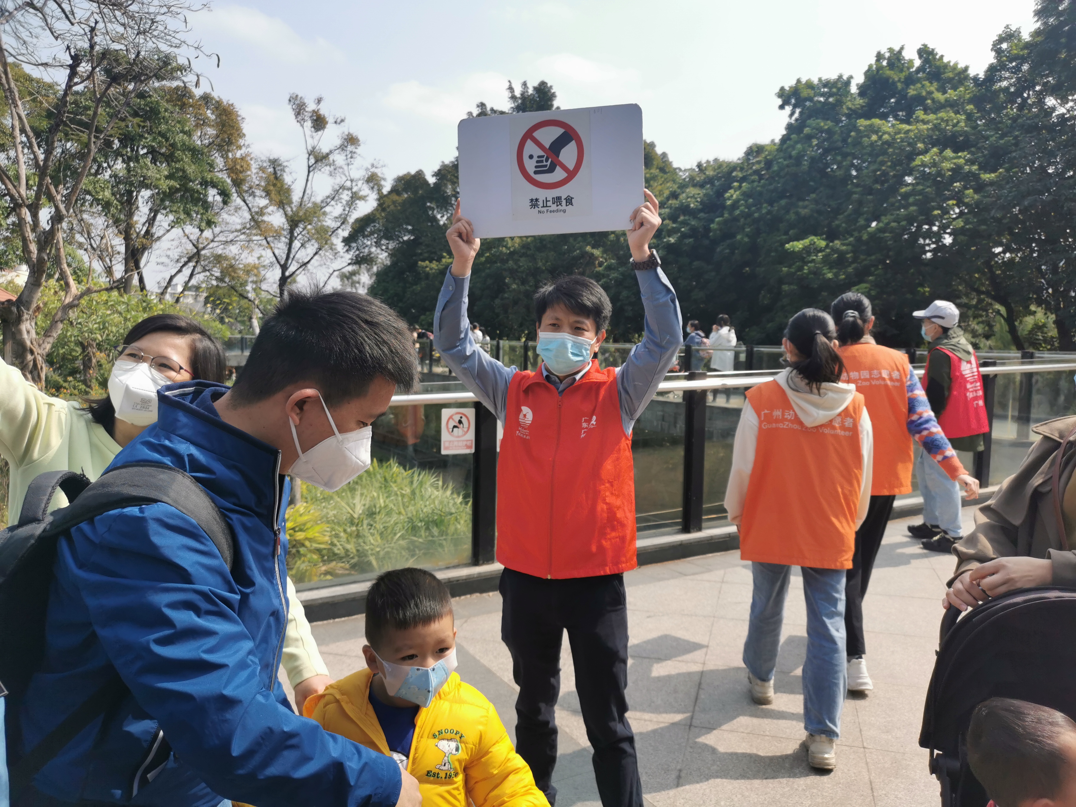 志愿者們?cè)趶V州動(dòng)物園門口集合,