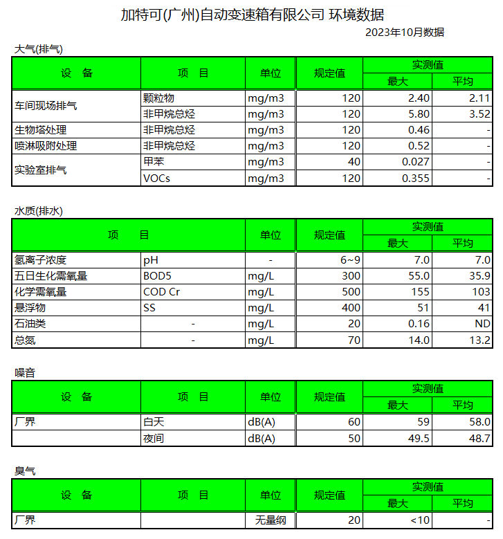 加特可的目標是提供環(huán)保性能優(yōu)越的高品質(zhì)商品,為保護地球環(huán)境,建設(shè)“汽車和環(huán)境共存的社會”作貢獻。踐行綠色制造,減少二氧化碳排放,打造環(huán)保產(chǎn)品,提高燃油經(jīng)濟性、安...