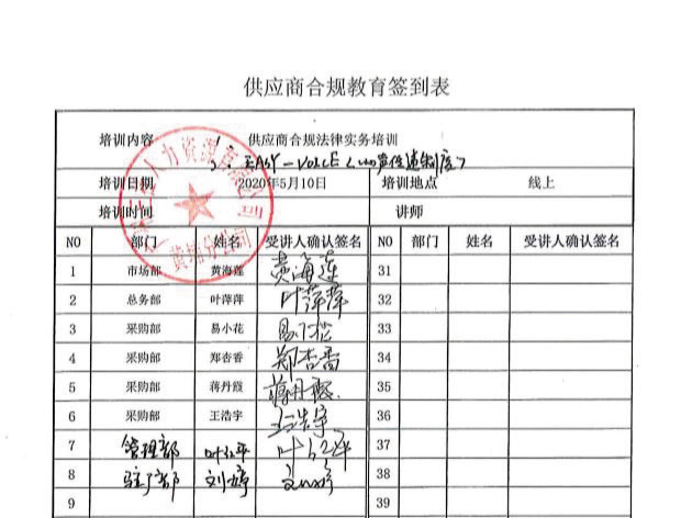 Compliance供應(yīng)商合規(guī)教育活動 Compliance事務(wù)局連攜各部門的Compliance推進(jìn)員,邀請對象供應(yīng)商(經(jīng)常來訪及有常駐人員的供應(yīng)商)于4月進(jìn)行線上Compliance教育。97%的供應(yīng)商參與了學(xué)習(xí),學(xué)習(xí)后的滿意度評價為4.9分(滿分5分)。 |
