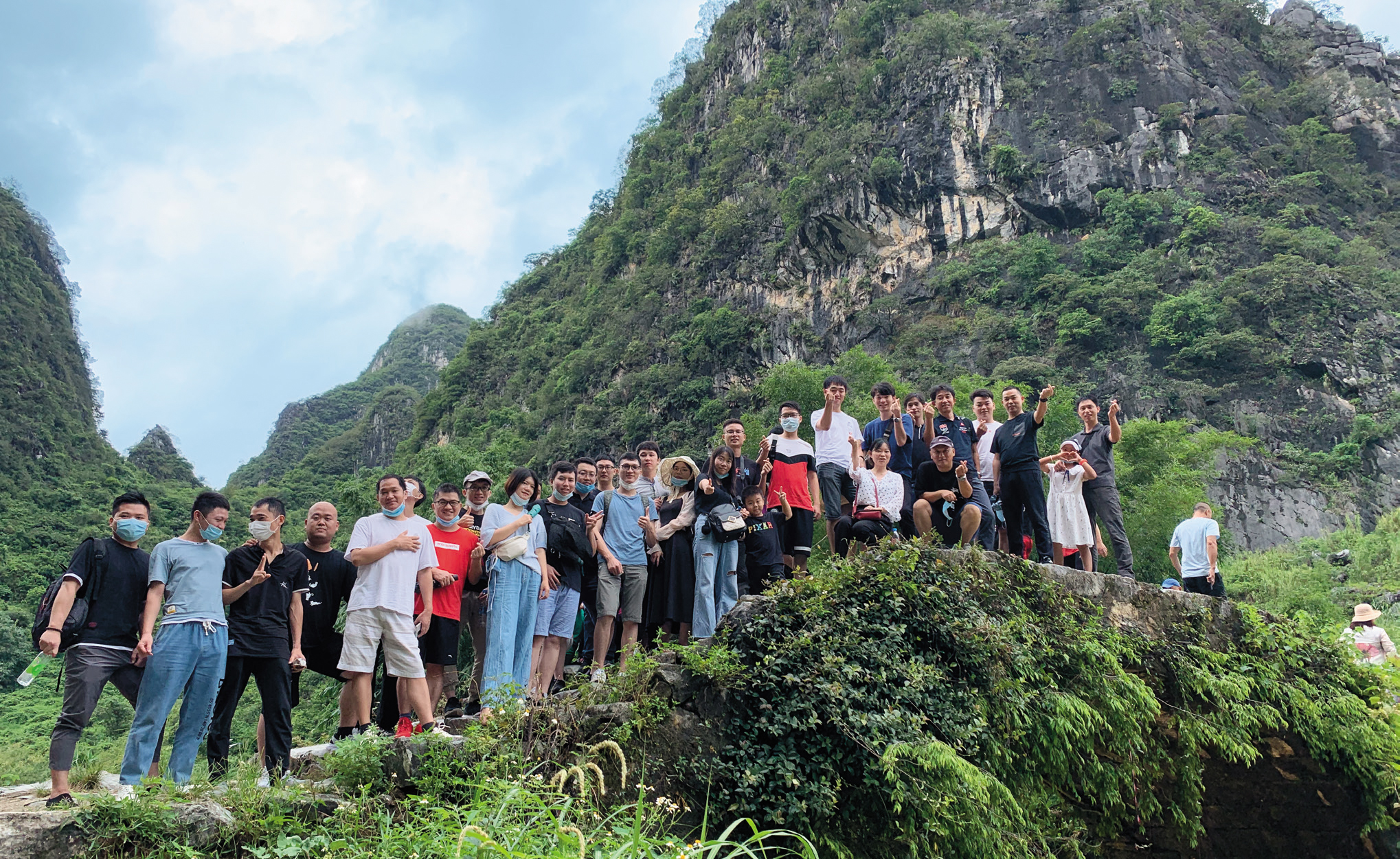 精彩小插曲,服務(wù)區(qū)休息時,突發(fā)狂風(fēng)大雨,使得我們一部分同事被困高速服務(wù)區(qū),無法前往幾十米外的大巴。車上的同事組織了一支“敢死隊”,每人帶上幾把傘,在狂風(fēng)暴雨中沖過去,把被困同事帶回來。這一刻,大家的凝聚力達(dá)到了頂峰,雨傘打濕的大巴里,滿是暖暖的溫馨。小小遺憾的是因暴雨以及時間較緊,沒能來得及去千年瑤寨,但是留下一個下次再來的理由也是不錯的。