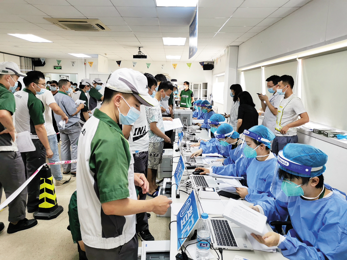 但按黃埔區(qū)防疫組要求,團(tuán)體必須達(dá)到5000人以上才能上門(mén)接種。公司領(lǐng)導(dǎo)層迅速與黃埔區(qū)政府反復(fù)溝通,秉承特事特辦原則,終于取得黃埔區(qū)衛(wèi)健委許可。