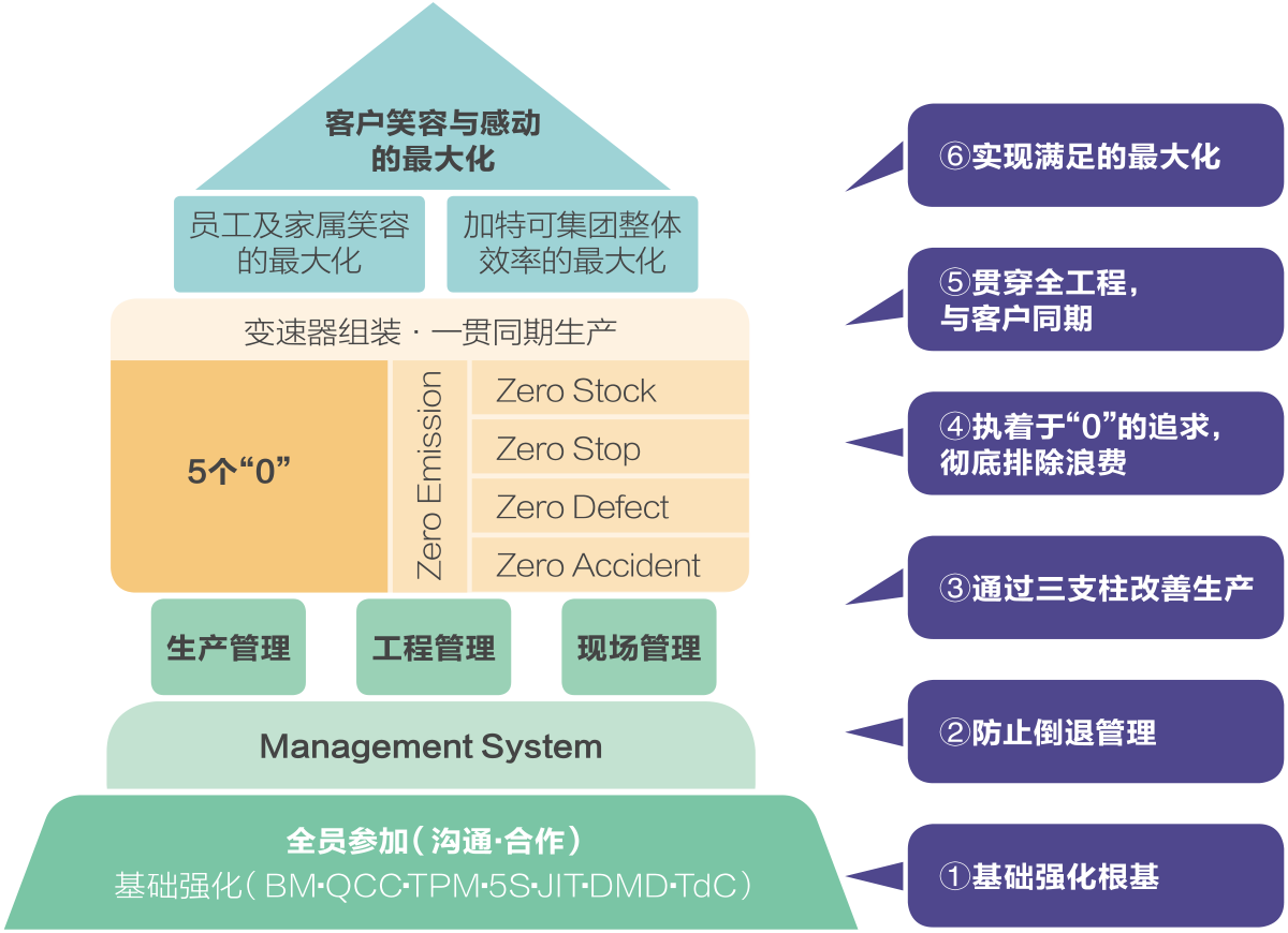 什么是JEPS? JEPS:從原材料采購(gòu)、加工、組裝、檢查到出貨,將所有工序整合到一條生產(chǎn)線上,排除一切浪費(fèi),這便是JEPS的精髓所在,也是加特可在世界各個(gè)據(jù)點(diǎn)都能穩(wěn)定產(chǎn)出高品質(zhì)產(chǎn)品的原因。 |