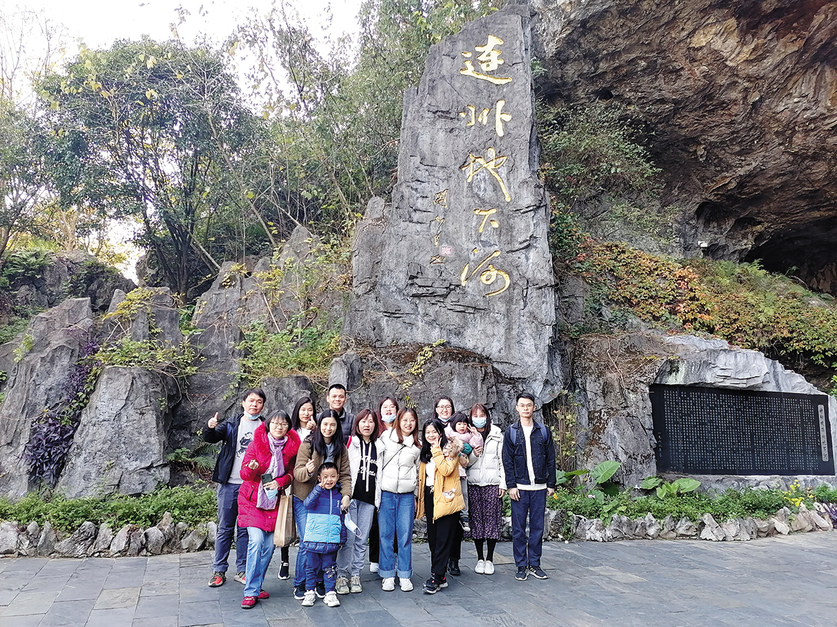 由于受疫情影響,這次我們部門的出游選擇了去廣東省內旅游勝地——清遠。在出游之前,旅游小達人王明同學對接好了旅行社,并妥善地安排了我們的行程、車輛及住宿等,還特別貼心地在出發(fā)前提醒大家要帶好的物品。 一大早出發(fā),到了差不多午飯時間,我們到達了第一個目的地——湟川三峽,并前往景區(qū)內的餐廳就餐。餐廳門口有一條神龍,位于水池中央,口吐噴泉,甚是壯觀。進入餐廳,滿桌的美味佳肴,甚是誘人,印象最深的莫過于清遠的白切雞,清香滑嫩;五花肉肥瘦相間;青菜清甜可口。用完午餐后,我們沿著小溪來到了游船,登上游船,領略湟川三峽的大好美景。游走在湟川三峽上,讓人聯(lián)想起李白的詩句“兩岸猿聲啼不住,輕舟已過萬重山”。湟川三峽兩岸之美,美得讓人窒息,隨手一拍,都是大片。即使攝影技術拙劣的我,也能拍出一張“明信片”。 游玩湟川三峽之后,我們繼續(xù)行進到下一個旅游勝地——千年瑤寨?,幷?,讓人記憶猶新的還是那步步臺階,由各種大石頭組成,要用較大的力氣才能行走在石梯上。石梯旁種植著“霜葉紅于二月花”的楓葉樹,路上的木架掛著一串串誘人的臘味,一種新年將近的感覺油然而生。石梯旁的商販坐在屋里吆喝著,行人駐足,轉身觀賞著周圍的美景,一片和諧、寧靜,日子就這樣慢下了腳步。瑤寨不僅風景優(yōu)美,最有特色的還是瑤寨的風土人情,未婚的沙腰妹和多情的阿貴哥,通過歌聲的傳遞向對方表白,只聽歌聲,便能結為夫妻,這就是世世代代的傳承。游玩了千年瑤寨之后,我們到了飯店,又飽餐了一頓,接著,來到了酒店休息。酒店位于偏遠的小鎮(zhèn),遠離喧囂與繁華,大家都在這晚早早入睡,釋放了積蓄已久的壓力,舒緩了長久緊繃的神經(jīng)。 第二天一大早,吃完自助早餐后,我們坐車前往連州地下河。連州地下河是一個大型的地下溶洞,來到地下河的洞口,順著崎嶇的小道往洞內走去,洞里的鐘乳石形態(tài)各異,在燈光的照射下,散發(fā)著絢麗的光彩。走完陸地層,我們擁擠地坐上了一艘小船,行進在曲折的河道上,遇到觸手可及的鐘乳石,洪水一般的瀑布。游船完畢之后,大家走出洞口,經(jīng)過一些商店,順便帶了點手信,帶上一把清遠青菜,踏上了回城之路。