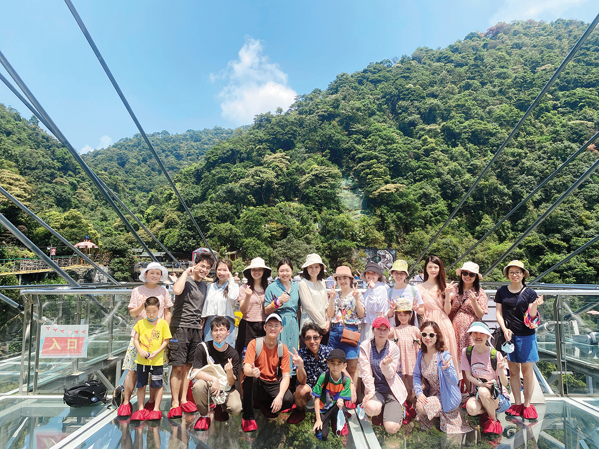 這一次出游,我們選擇了多部門連攜,共有同事和家屬29人一起快樂出行。受疫情影響,我們選擇了省內出游目的地:清遠古龍峽云天波霸玻璃大峽谷和芊麗溫泉酒店。這里是被刷屏的網(wǎng)紅打卡點,出片率不要太高噢。景區(qū)的空氣清新,綠色生態(tài)極好。不愧是世界最大的高空玻璃游覽線路,真的很震撼。 第一天大家一起來到網(wǎng)紅景點——清遠古龍峽云天波霸玻璃大峽谷,感受一下令人步步驚心的玻璃棧道,在高空上漫步,鍛煉自己的膽量。登上玻璃大峽谷的路途中,需要經(jīng)過很多級階梯,很多小朋友能夠自己堅持走完全程,真的很棒??吹狡饺沾蟠筮诌值耐?,通過玻璃橋時戰(zhàn)戰(zhàn)兢兢的樣子,還挺可愛的。 第二天的行程比較輕松,可以享受一個沒有morning call 的早晨,享用豐富的自助早餐后,可以在酒店自由活動(健身、射箭、高爾夫…),悠閑自在地度過一個美好的上午,午餐后就準備返程啦。