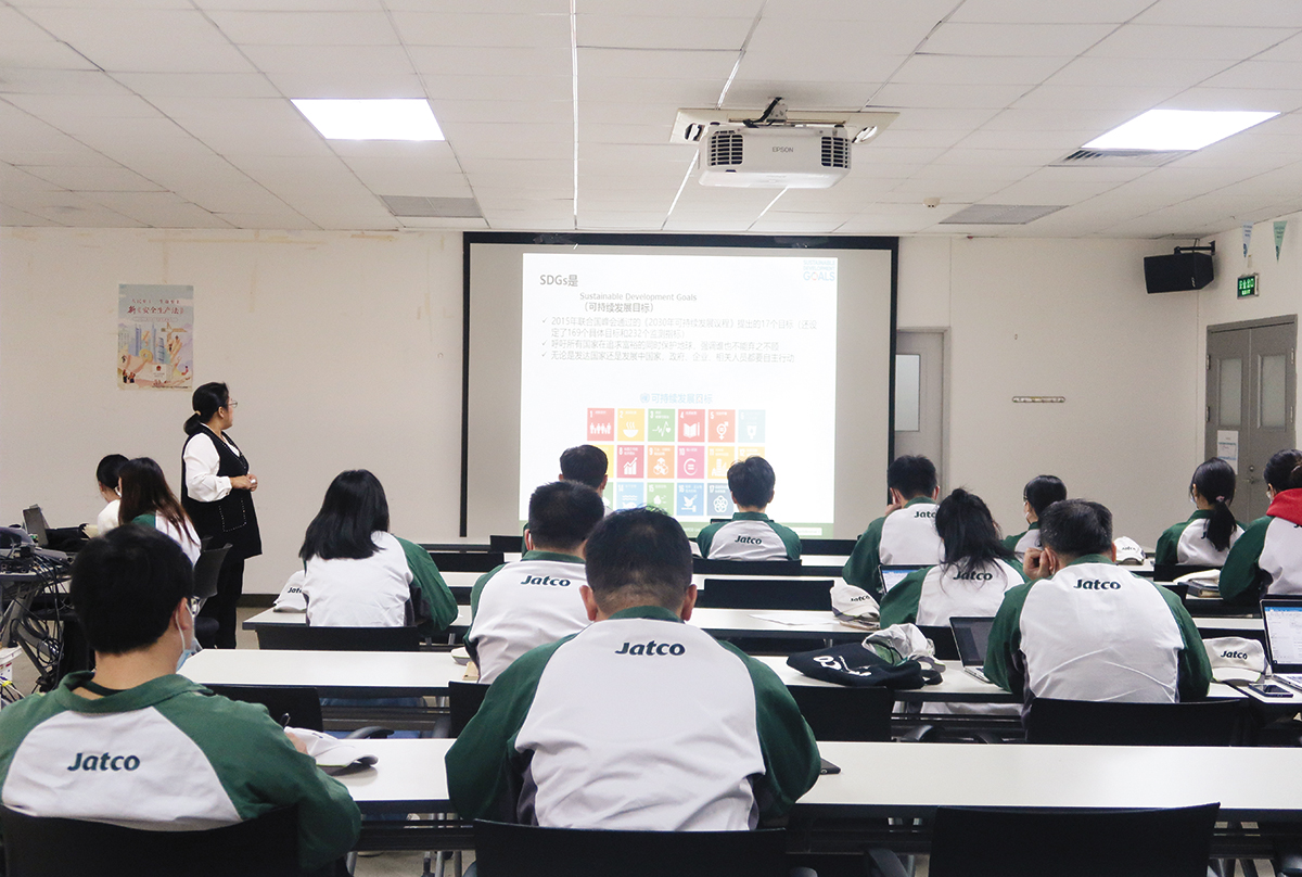 面向科長(zhǎng)以上人員的SDGs宣傳講座活動(dòng)于2022年1月26日在加特可廣州第二研修室召開。本次講座的講師由經(jīng)營(yíng)企劃室部長(zhǎng)吳英淑擔(dān)任,講座內(nèi)容主要分為SDGs篇及碳中和篇。