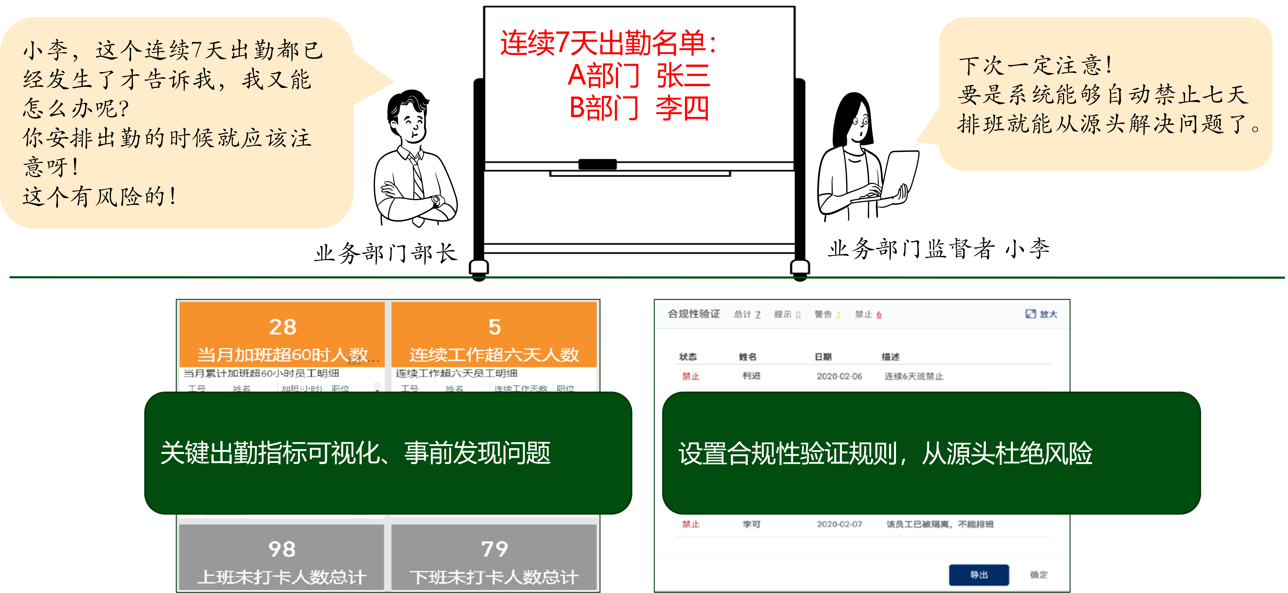 5. 合規(guī)性驗證規(guī)則的設置,在源頭消除連續(xù)7天出勤、加班超時等用工風險。