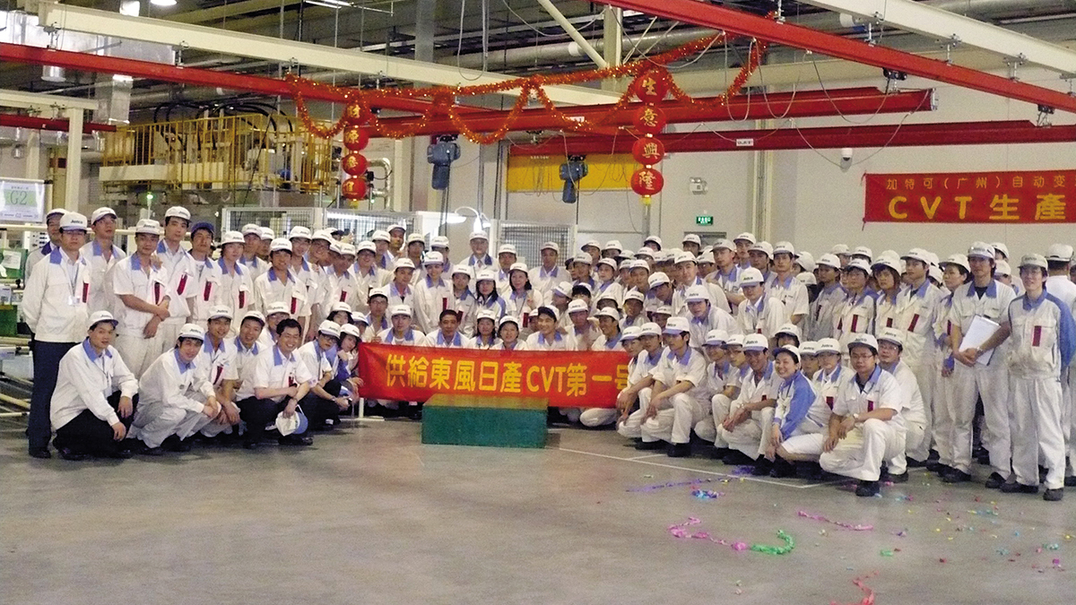 劉勤發(fā) 第四生產(chǎn)部 黃堅濤 工務(wù)部 2023年,隨著第1000萬臺變速器下線,加特可廣州正式邁入中國變速器千萬俱樂部行列。1000萬臺,不僅是加特可廣州的里程碑,更是無數(shù)加特可人不懈追夢,用奮斗譜寫無悔青春的證明。 從2007年11月工廠奠基,到2009年3月第1臺CVT(Jatco JF011E)誕生,再到千萬臺達(dá)成,背后有哪些記憶猶新的崢嶸歲月?加特可人又克服了哪些難關(guān)?帶著這樣的疑問,編輯部采訪了第一批進入加特可廣州的兩位資深員工——第四生產(chǎn)部科長劉勤發(fā)和工務(wù)部科長黃堅濤。 黃土地上,第1臺CVT誕生“2008年9月搬入廠內(nèi)時,廠區(qū)外圍只有黃土地,連條像樣的路都沒有。一期工廠也剛剛竣工,廠房內(nèi)沒有設(shè)備,整個空蕩蕩的,除了制造辦公室外工程車的作業(yè)聲,就只剩頂棚上施工的聲音與我們?yōu)榘?。”談起一期工廠的建成史,2008年4月8日進入加特可廣州的劉勤發(fā),至今對諸多細(xì)節(jié)記憶猶新。 那時,加特可廣州只有20人左右,作為第一批員工,他們的工作就是整理資料、打掃車間衛(wèi)生,為第1臺CVT的下線做準(zhǔn)備。 當(dāng)時,中國沒有多少人了解CVT,資料更幾近空白。好在從加特可日本來了許多支援者,他們協(xié)助中方員工搭建廠房、訓(xùn)練基礎(chǔ)技能,順利度過了從ET(Engineering Trial)、PT(Production Trial)試作到第1臺CVT下線的階段。 “我們每天都要練習(xí)技能,拆了裝,再裝了拆,大家基本技能都練得很扎實,品質(zhì)確認(rèn)、加工、組裝等各個崗位的技能都能熟練掌握?!眲⑶诎l(fā)說,那會兒品質(zhì)意識特別強,只要有零部件掉了,就要停線,發(fā)動全部人里里外外去找,直至找到為止,有些零件很小,一找就是一整天。 “而且由于文化原因,日方支援者的工作習(xí)慣和我們不一樣,不可避免產(chǎn)生了很多矛盾,也正是在這種文化磨合中,我們彼此學(xué)到了很多。” 產(chǎn)能爬坡,快速擴建2009年3月22日,劉勤發(fā)和同事買了一大塊紅綢、兩瓶香檳、兩扎禮炮,為23日的第1臺CVT下線做準(zhǔn)備。 “下線儀式當(dāng)天特別開心,我們自己扎了彩條、花車,生產(chǎn)部四五十人都換上干凈的工服、最新的手套,大伙看著那臺CVT從生產(chǎn)線上手搖下來,然后圍著它簽名?!眲⑶诎l(fā)回憶道,當(dāng)時負(fù)責(zé)下線的同事,既激動又小心翼翼,兩只手抖個不停。 擴建在預(yù)期的時間中到來。2009年11月25日,二、三期工廠動工儀式舉行;2011年,四期工廠建設(shè)動工儀式舉行。加特可廣州的產(chǎn)量,也一路攀升,2009年9月累計生產(chǎn)達(dá)成1萬臺,2010年6月第10萬臺CVT誕生…… “前期派了幾個主干去日本學(xué)習(xí)齒輪、熱處理、帶輪等知識,他們回來后就開始籌建二、三、四期工廠。每期工廠擴建很快,差不多10個月就完工了(2010年9月13日二、三期工廠竣工、2011年11月21日四期工廠竣工),我每次上夜班時,都能聽到隔壁打樁的duang duang聲?!?008年7月1日入職的黃堅濤,清楚記得每個環(huán)節(jié),“他們每天要做到晚上近十點,第二天白天還是正常上班,很多布局、設(shè)備導(dǎo)入、調(diào)試工作要做?!?/p> “那時生產(chǎn)線很熱,沒有空調(diào),也不能吹風(fēng)扇,怕灰塵吹到設(shè)備里去,一天下來全身都濕透了,也不知道當(dāng)時怎么挺過來的?!秉S堅濤說,雖然挺累,但大家都很開心,做完了兩個班還會PK,氛圍特別好。